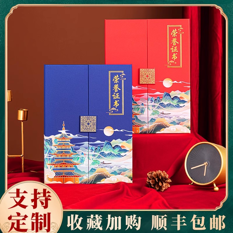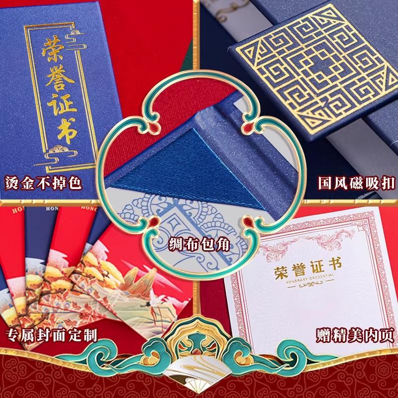 荣誉证书三折页彩色封面定制中国风高级感聘书聘书A4奖状内页打印公司优秀员工颁奖公司培训结课结业证书定做