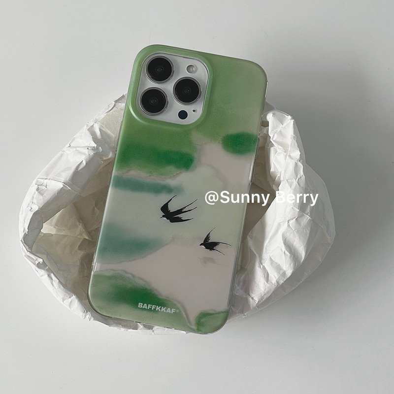 向日的浆果ins小众新中式气质艺术春意绿色渐变燕子适用苹果16proMax手机壳iphone15pro/14/12/13保护套防摔