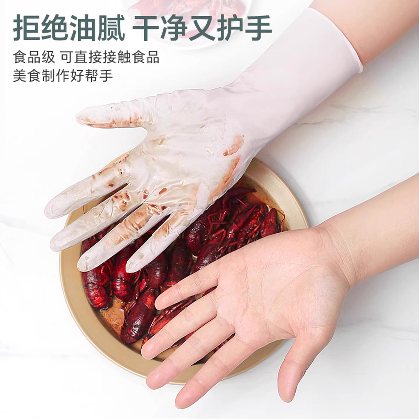 一次性洗碗手套女家务清洁厨房耐用食品级加长丁腈PVC家用薄贴手