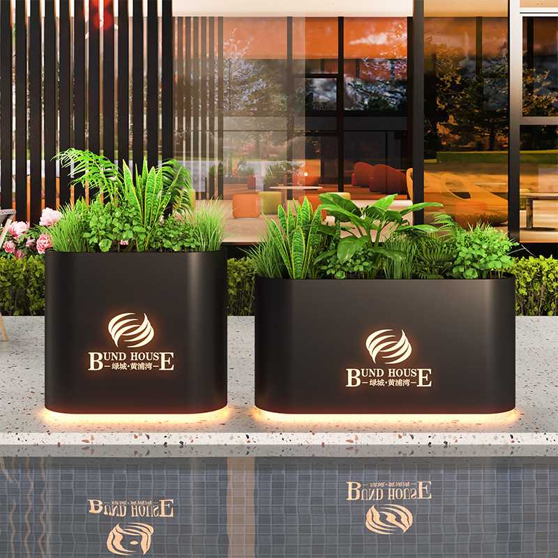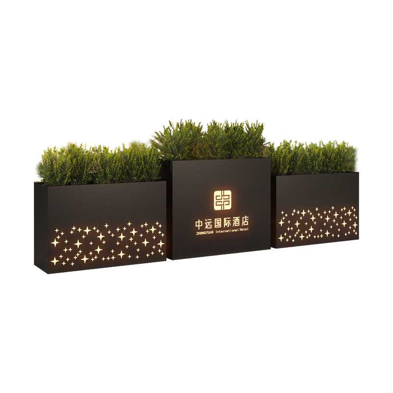 户外不锈钢花箱三件套围栏庭院室内外隔断花盆长方形铁艺组合花架