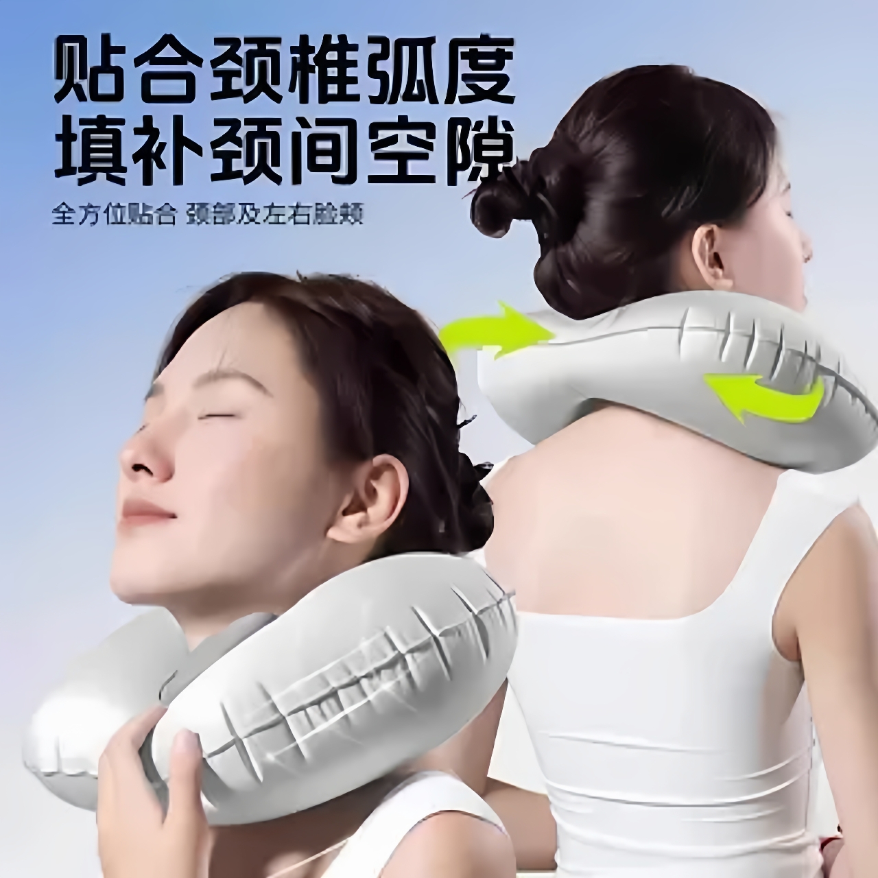 充气u型枕旅行便携颈枕坐车飞机u形枕护颈旅游出行靠脖按压式枕头