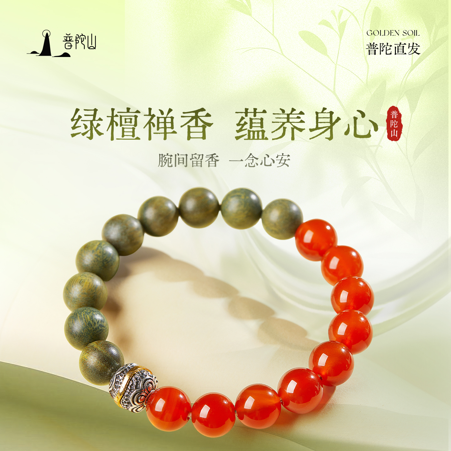 普陀山红玛瑙手串女款正品天然绿檀手链转远珠护身符送女朋友礼物