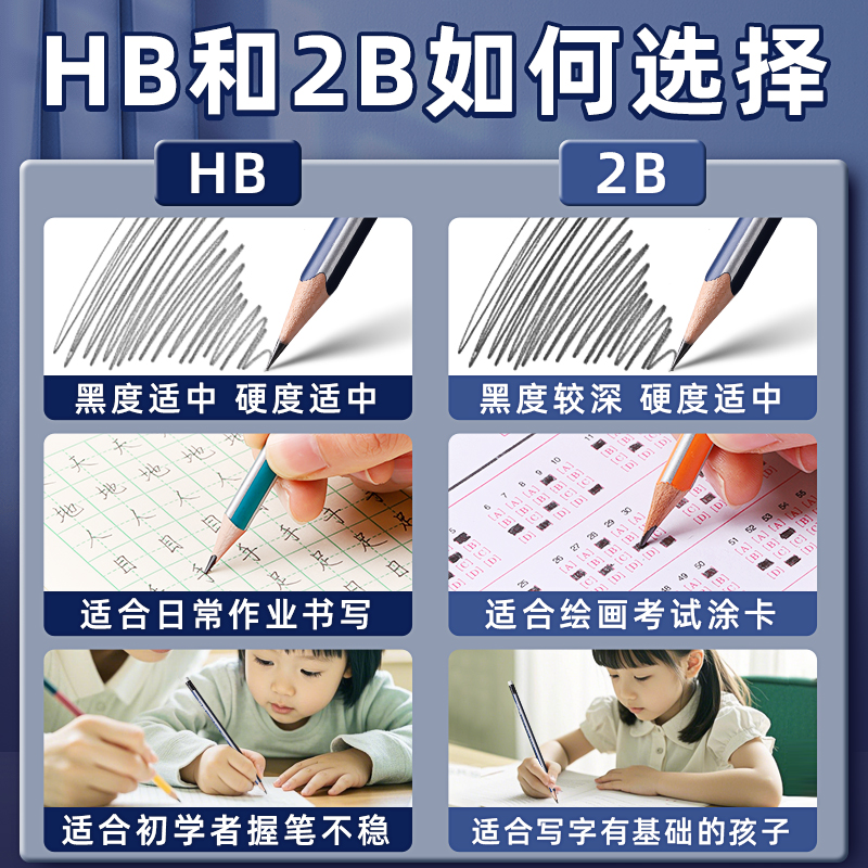 黑木铅笔三角正姿铅笔HB小学生专用一二年级学生铅笔2B幼儿园儿童初学练字学习文具无毒考试笔素描笔绘画笔