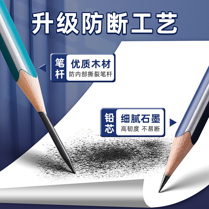 Nusign纽赛小绿杆黑木铅笔hb小学生专用一二年级学习用品正姿高颜值加粗铅芯无铅毒得力书写绘画矫姿素描初学
