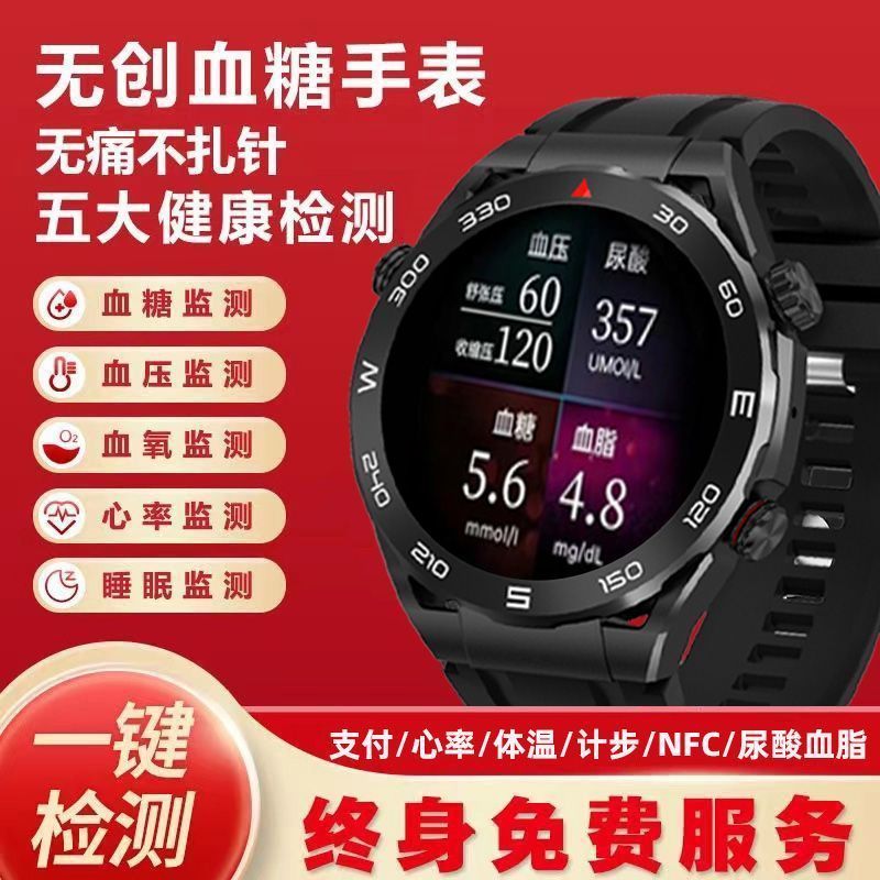 2025新款多功能无创血糖手表尿酸血脂心率血压血氧监测运动手环