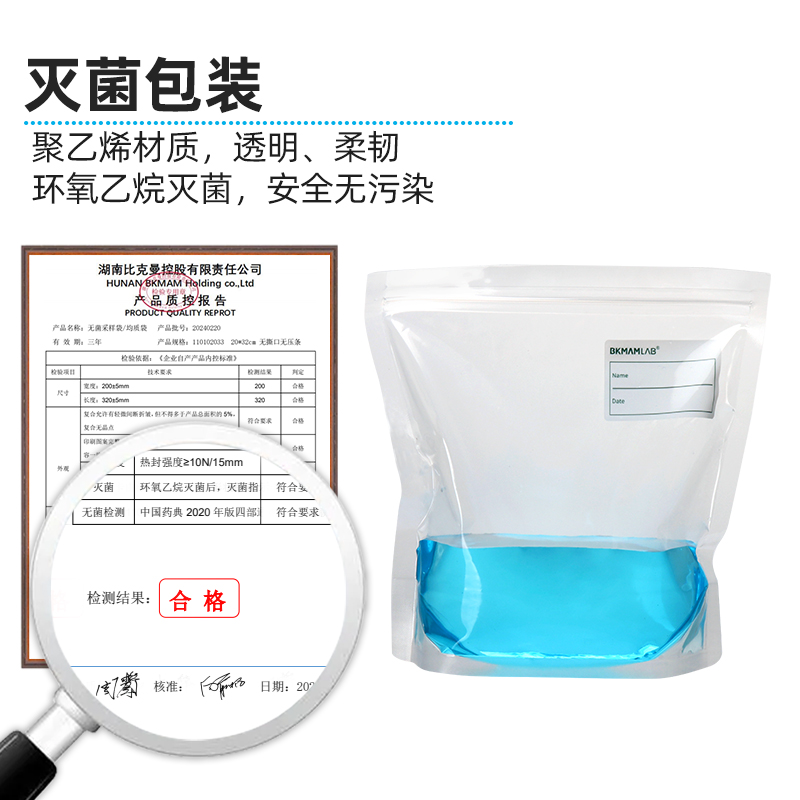 比克曼生物一次性无菌采样袋带压条无菌均质袋取样液体气体样品袋水质水样采样袋采集袋12*18cm20*32cm