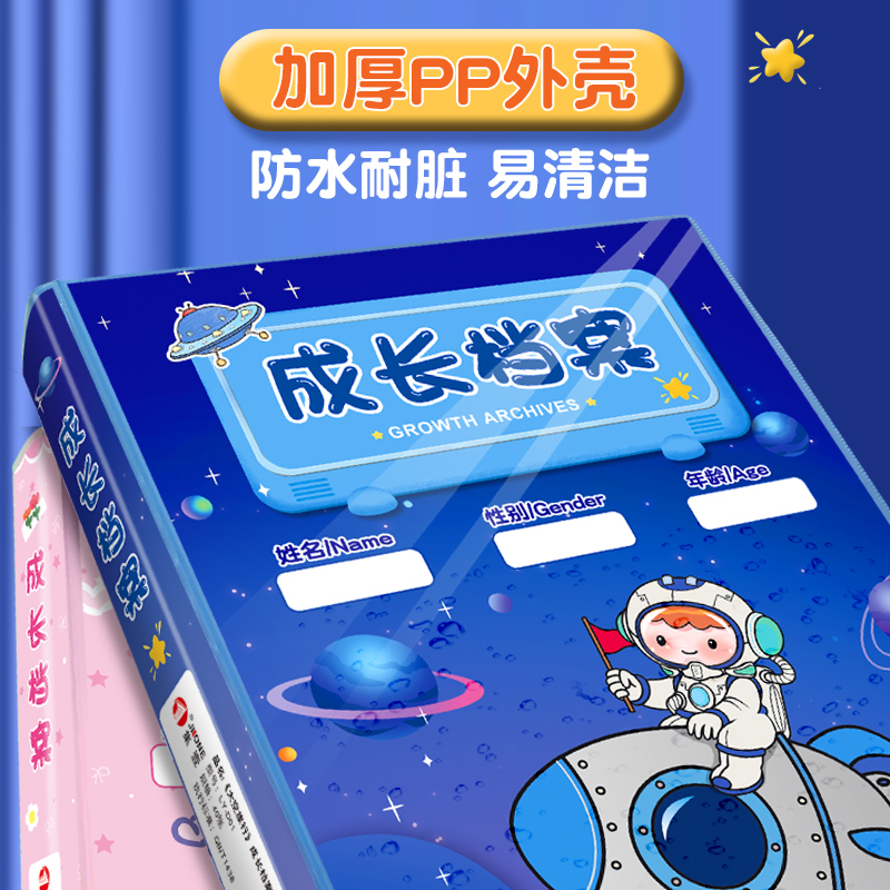 儿童成长档案记录册小学生幼儿园diy成长档案手册男孩女孩美术作品奖状收纳册宝宝相片家庭相册纪念册定制