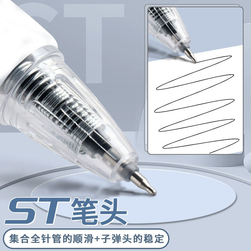 ST刷题笔高颜值按动中性笔圆珠笔黑色水笔小学生专用考试0.5速干碳素笔水性黑笔按压式做笔记签字笔非按斤卖