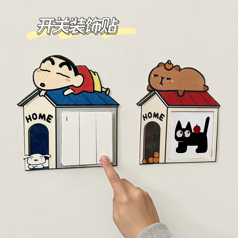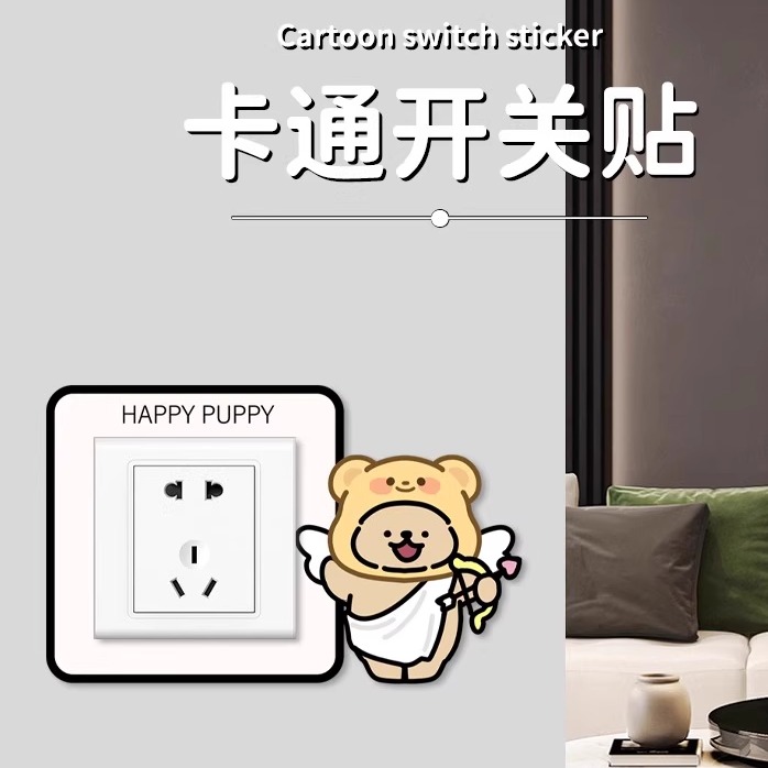 创意小狗开关贴墙贴插座面板遮丑可爱家用墙面装饰壁贴卡通边框套