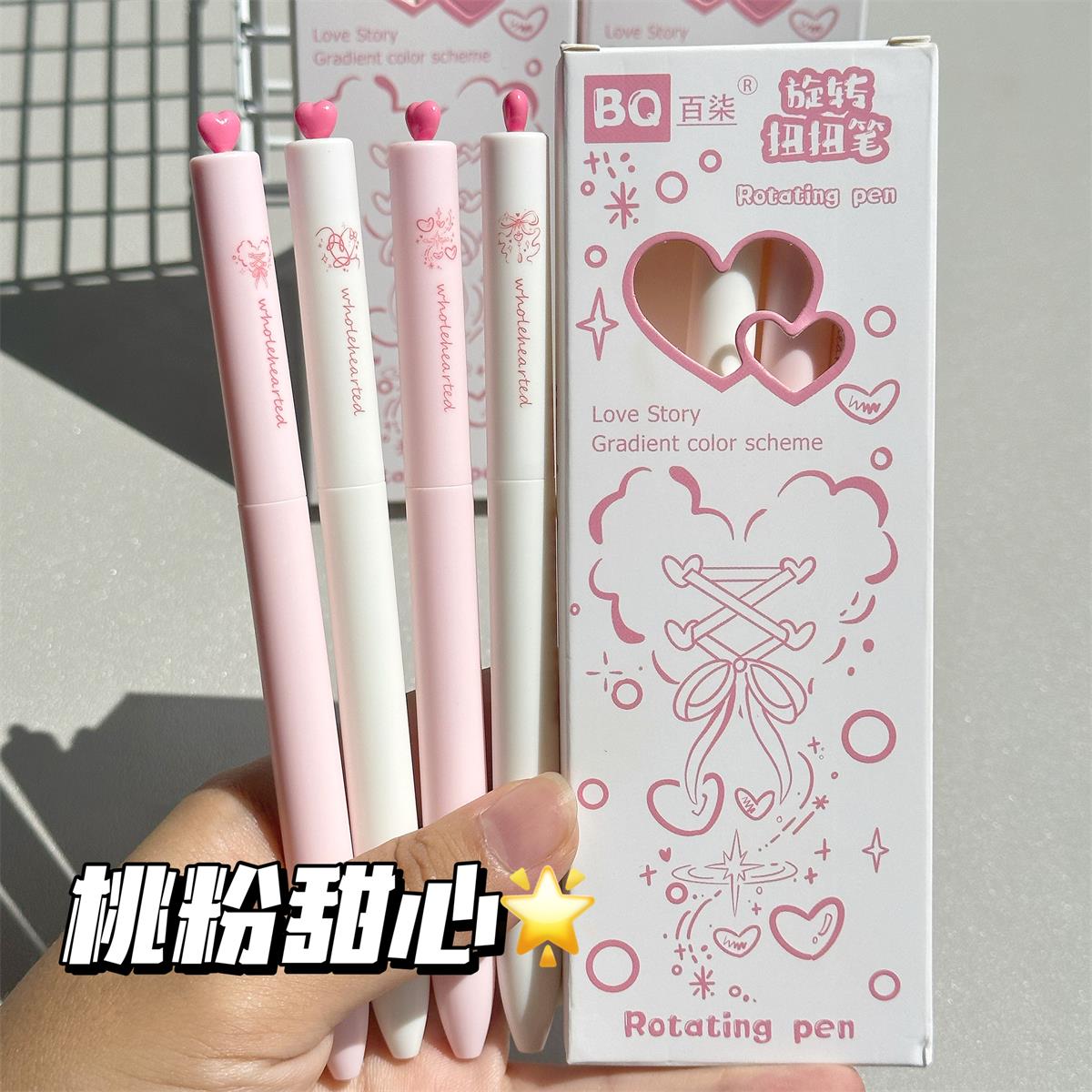 桃粉甜心旋转出芯ins风中性笔ST笔尖签字笔高颜值文具刷题黑笔低重心0.5速干水笔学生考试用少女心粉色圆珠笔