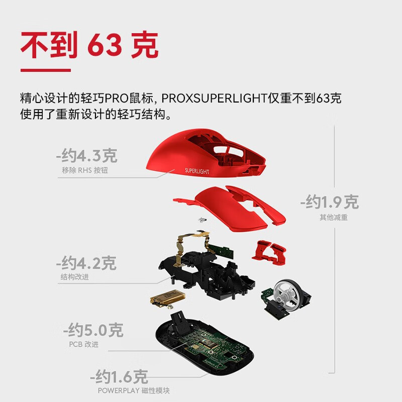 拆包可保罗技GPW狗屁王二代2代红色63g无线鼠标gpw2胜利之红双模