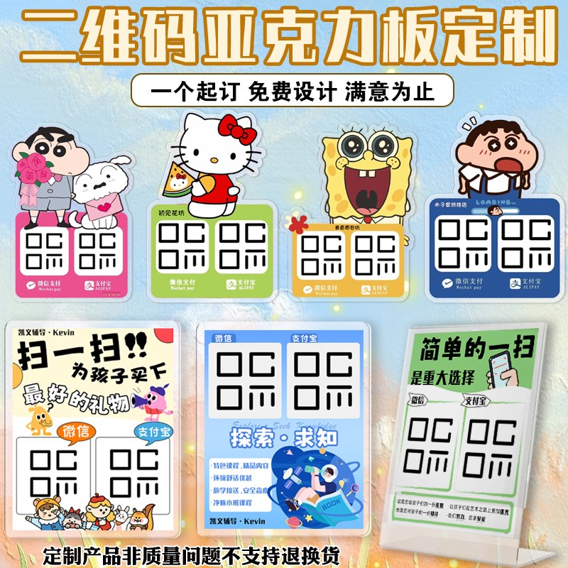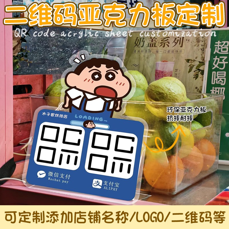亚克力二维码收款牌定制卡通收付款展示牌桌牌设计店铺摆件立牌