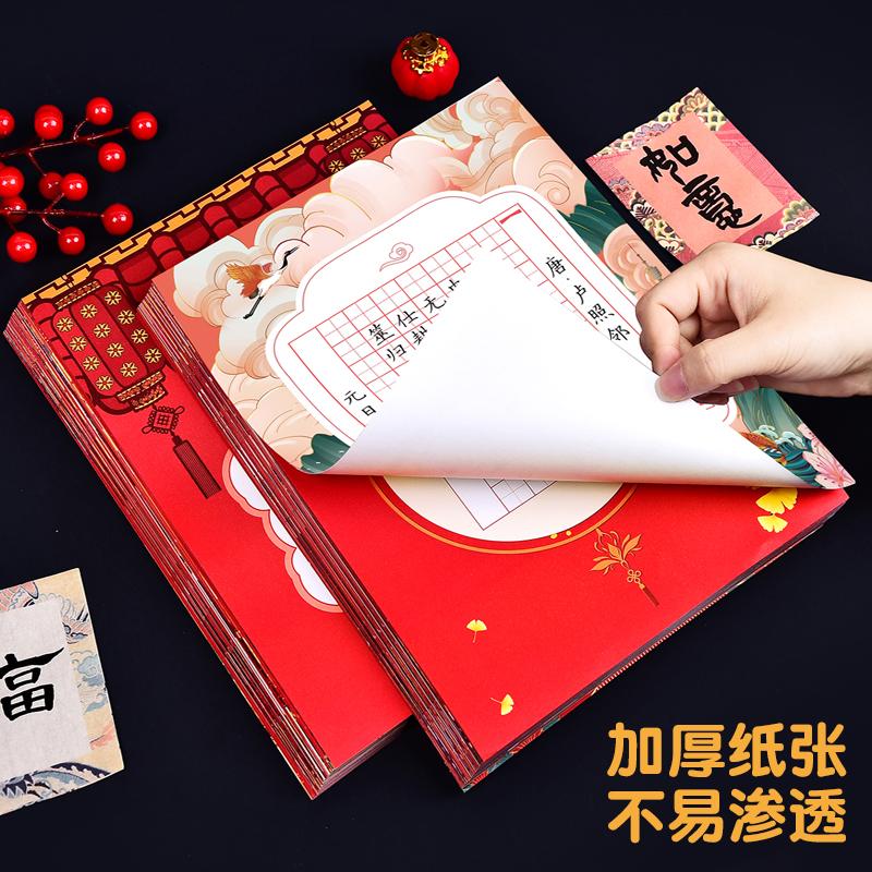 a4学生中国红色主题喜庆爱国国庆节快乐主题红色作品田字格五言七言学生高级比赛专用古诗词抄写钢笔练习纸
