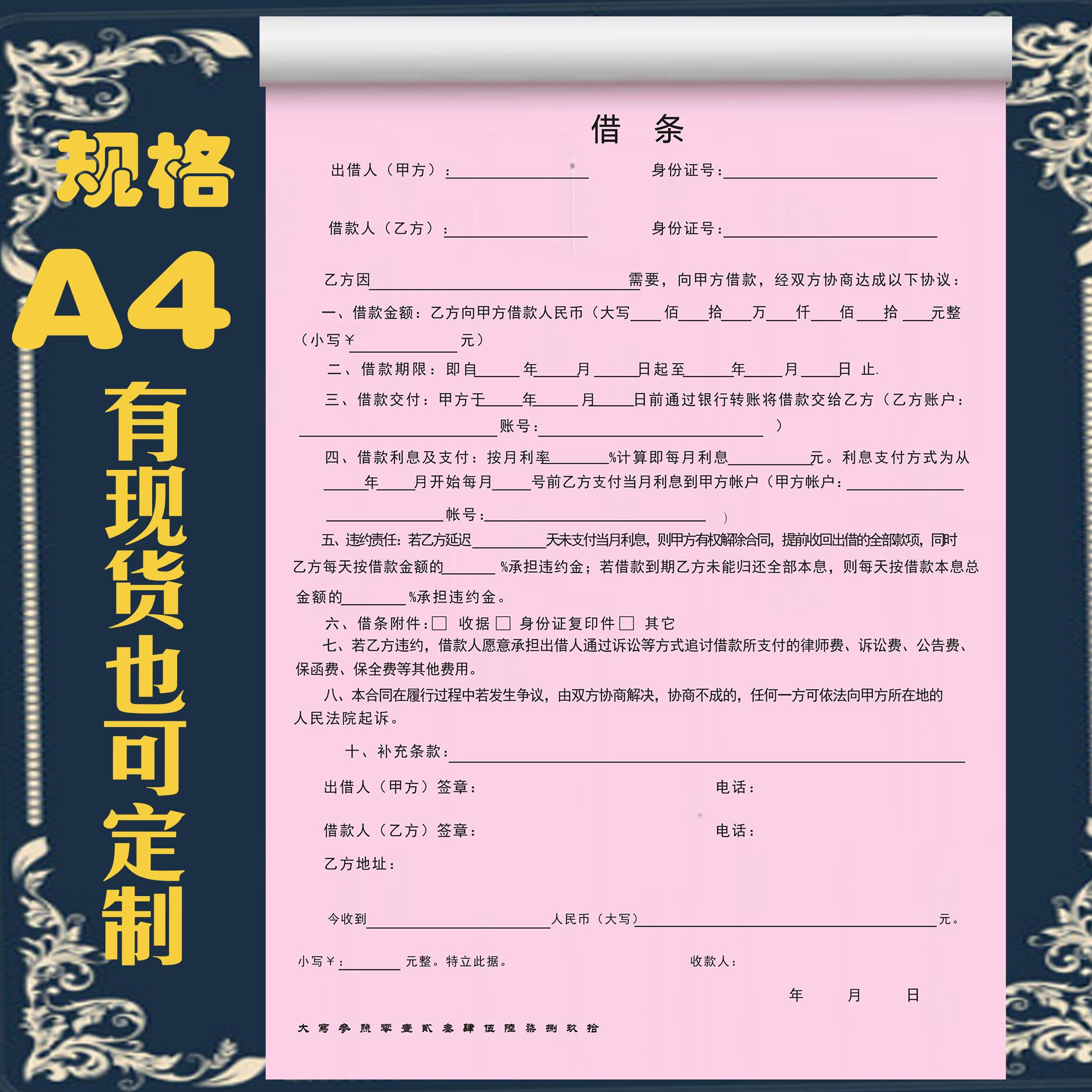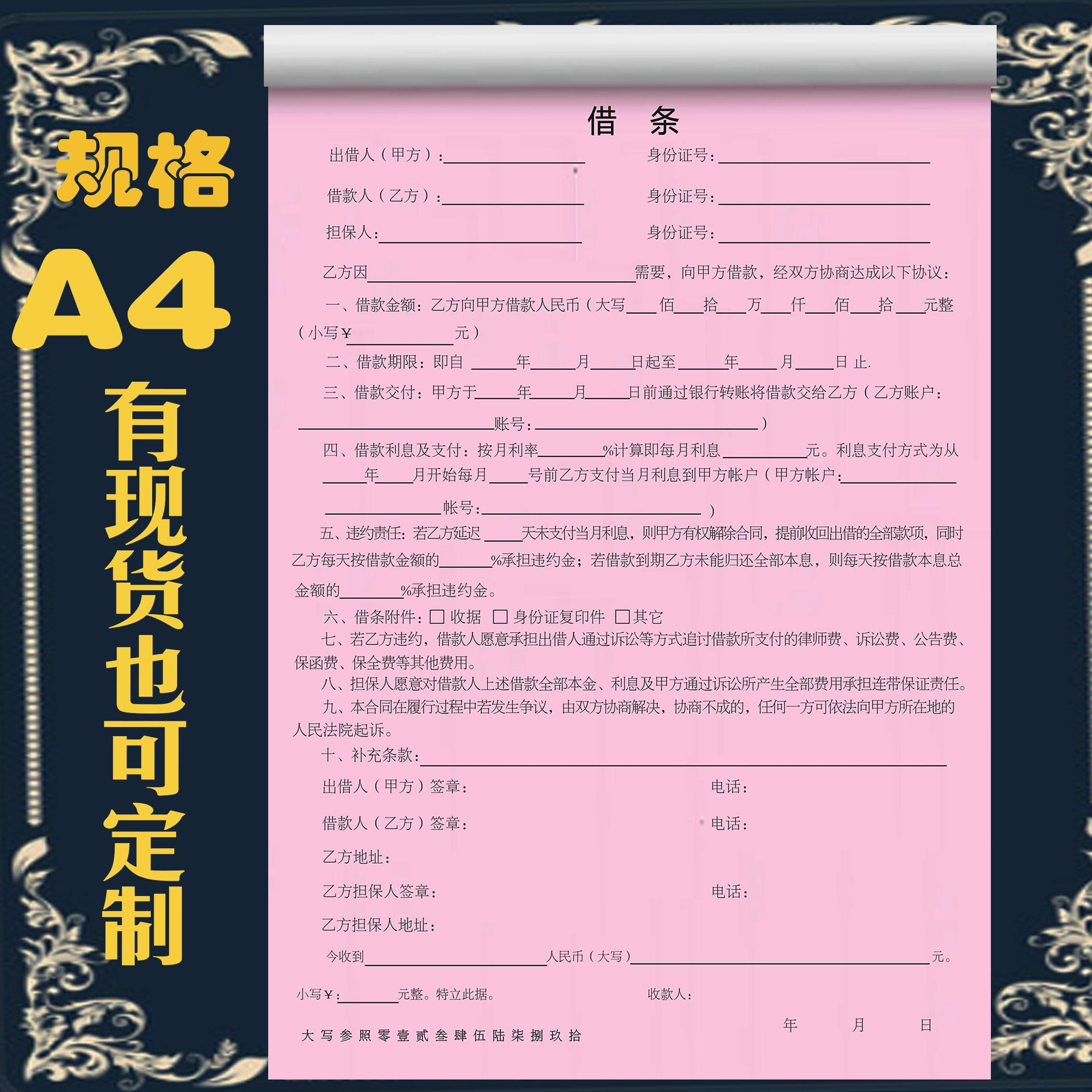 借条法律认可借据正规借款单私人借条个人欠条欠款条二联收据定制