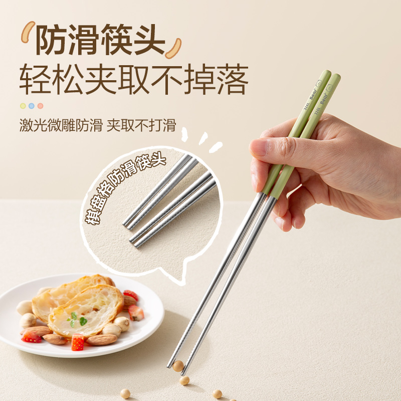 双枪儿童专用合金筷子可爱猫爪筷熊熊筷家用抗菌防霉耐高温6-12岁
