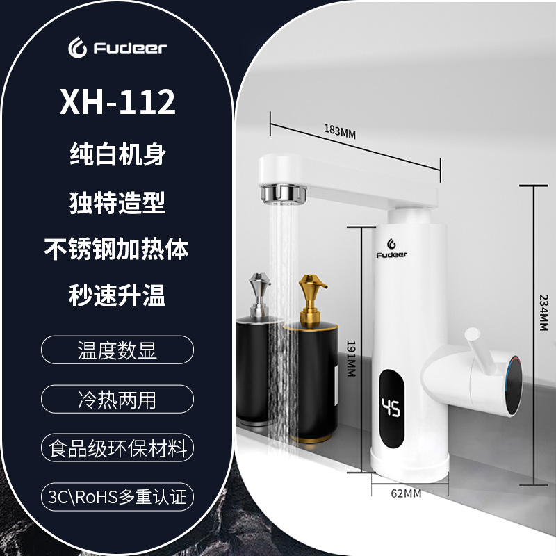 弗德尔即热式水龙头厨卫浴室家用速热小厨宝冷热两用显温过水防溅