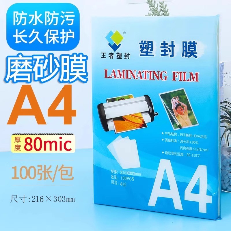 王者磨砂塑封膜a4哑光不反光过塑膜自封照片过胶膜护卡膜奖状热塑