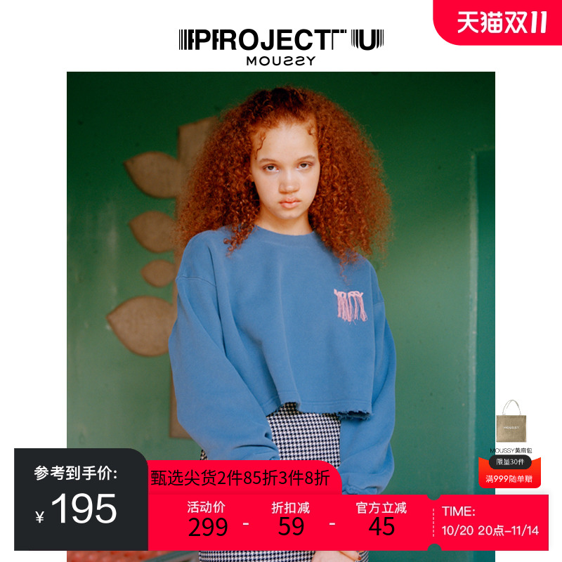 【PROJECT U】MOUSSY冬季新品截断刺绣流苏卫衣010GA590-5490