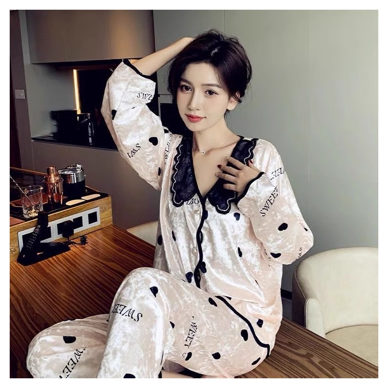 高端钻石丝绒睡衣女春秋季长袖家居服套装甜美法式2025新款娃娃领
