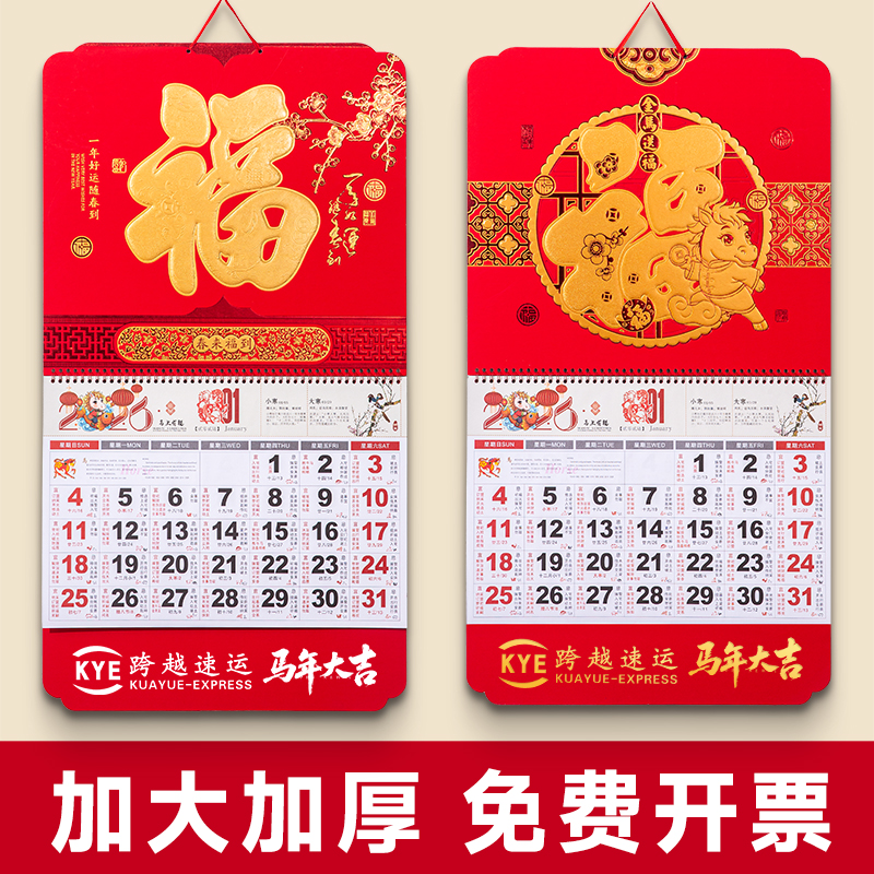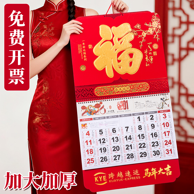 2026马年新款红色加厚加大纸架挂历家用喜庆大六开墙壁挂饰日历镂空浮雕立体年历新年送礼佳选来图可定制logo