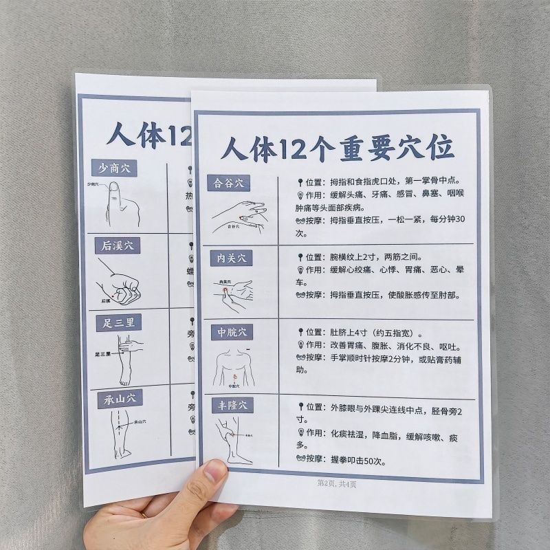 人体12个重要的穴位十二经络位置与作用穴位按摩疏通A4记事本