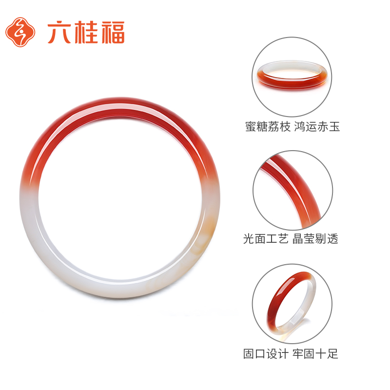 六桂福珠宝玛瑙荔枝冻叮当玉髓玉镯手镯飘花细条情人节礼物送女友