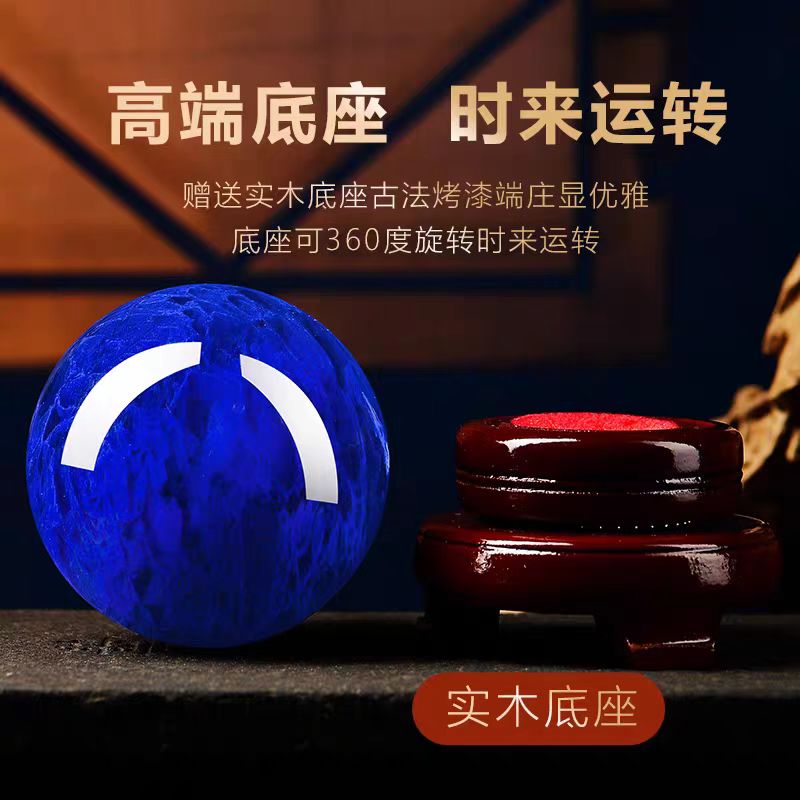 天然熔炼蓝色水晶球摆件招财风水转运球家居摆件实木底座蓝水晶
