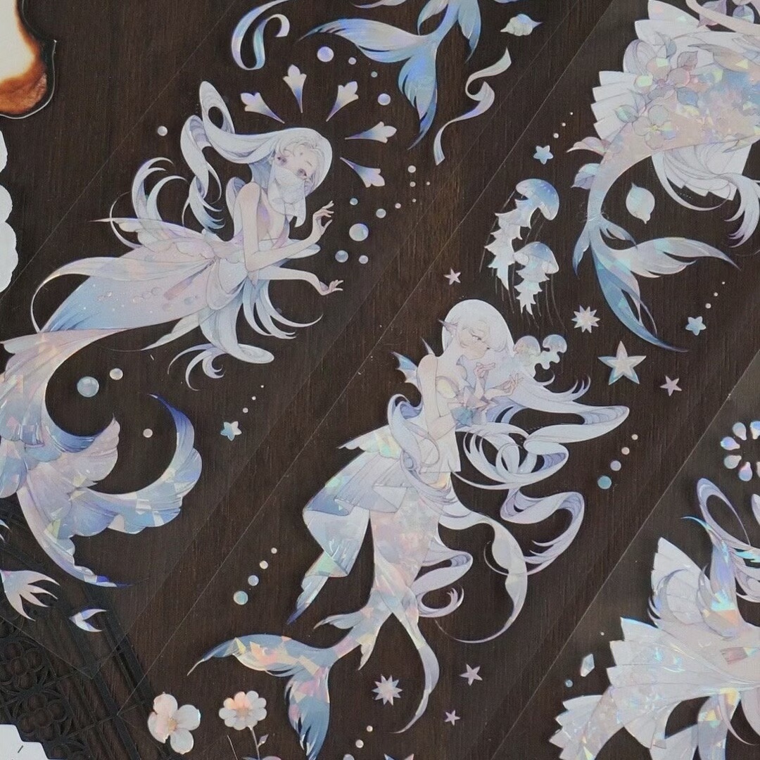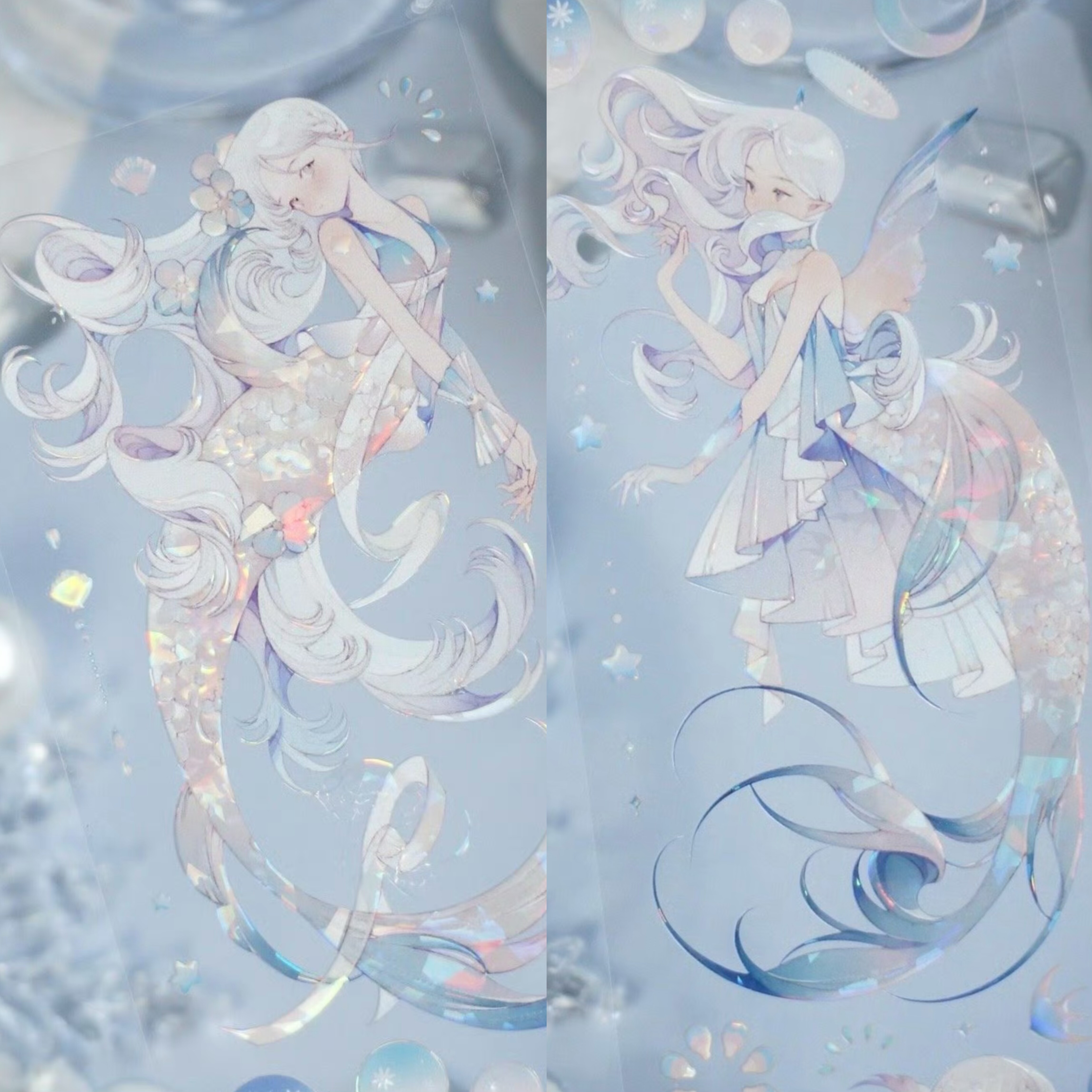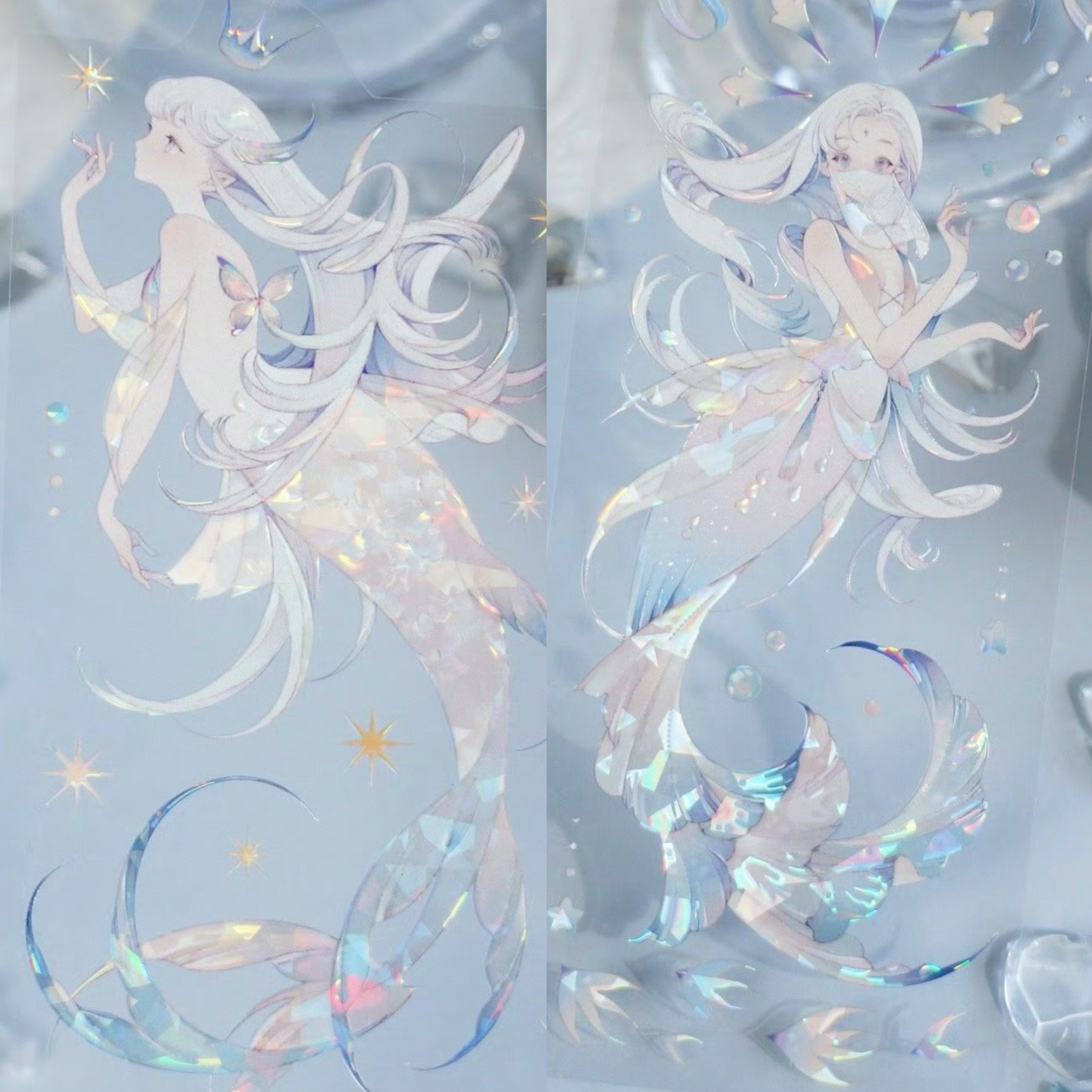 日光下的海和蔚蓝眼泪 纯情男友PET贝壳光胶带绝美人物人鱼小姐姐