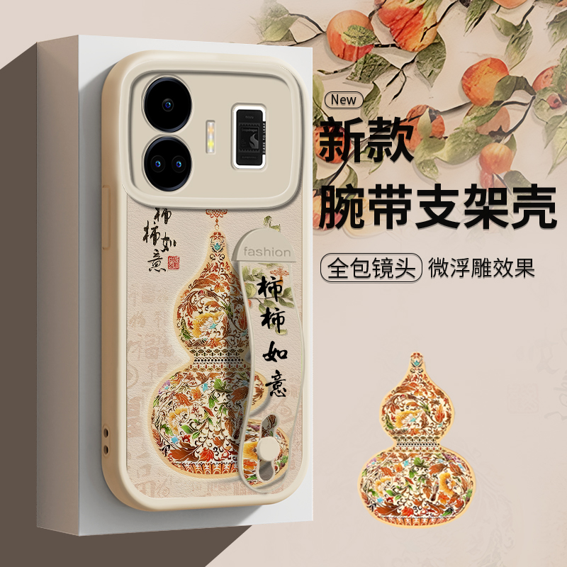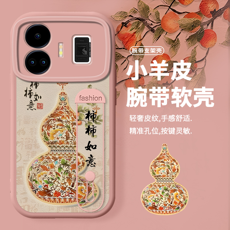 金丝宝葫芦适用realme真我GTneo5手机壳GTneo5se新款OPPO小羊皮腕带支架全包防摔女高级艺术保护软套