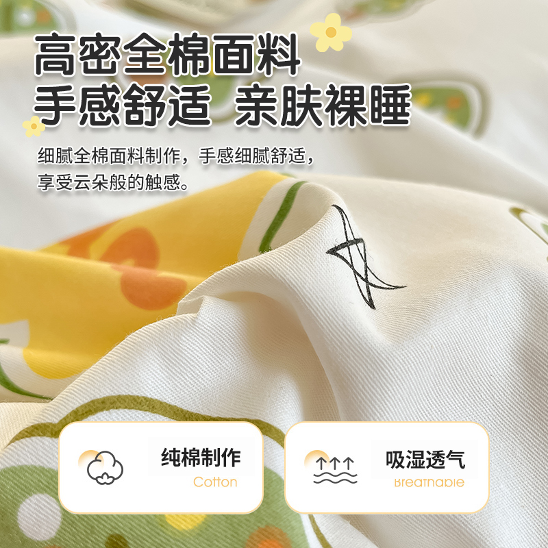 无印良品全棉四件套学生宿舍纯棉卡通儿童被套床单三件套床上用品