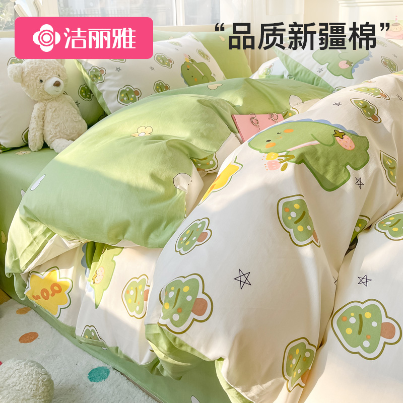 洁丽雅新款纯棉床品四件套100全棉被套床单宿舍床上三件套床笠款
