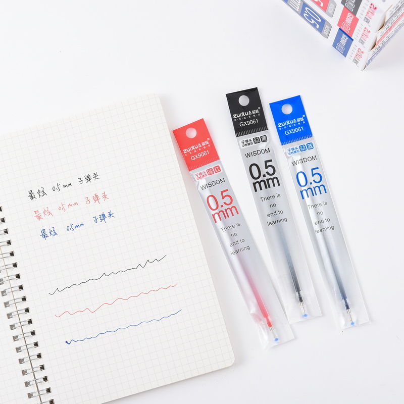 最炫盒装中性笔芯子弹0.5mm办公商务书写针管碳素黑色学生水性笔