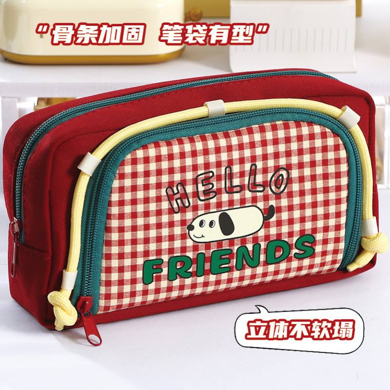 2025新款ins女生小众小学初中卡通小狗大容量复古格子开窗笔袋男女通用可爱高颜值耐脏文具袋