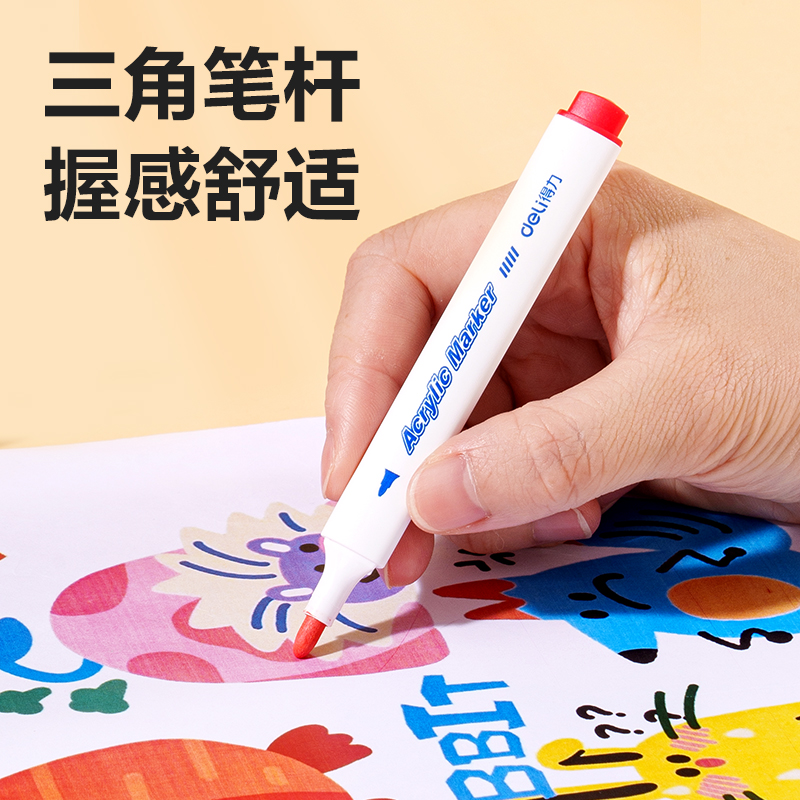 得力24色的丙烯马克笔小学生美术专用12色36色48色彩笔丙烯马克笔幼儿园大容量画笔美术生专用笔