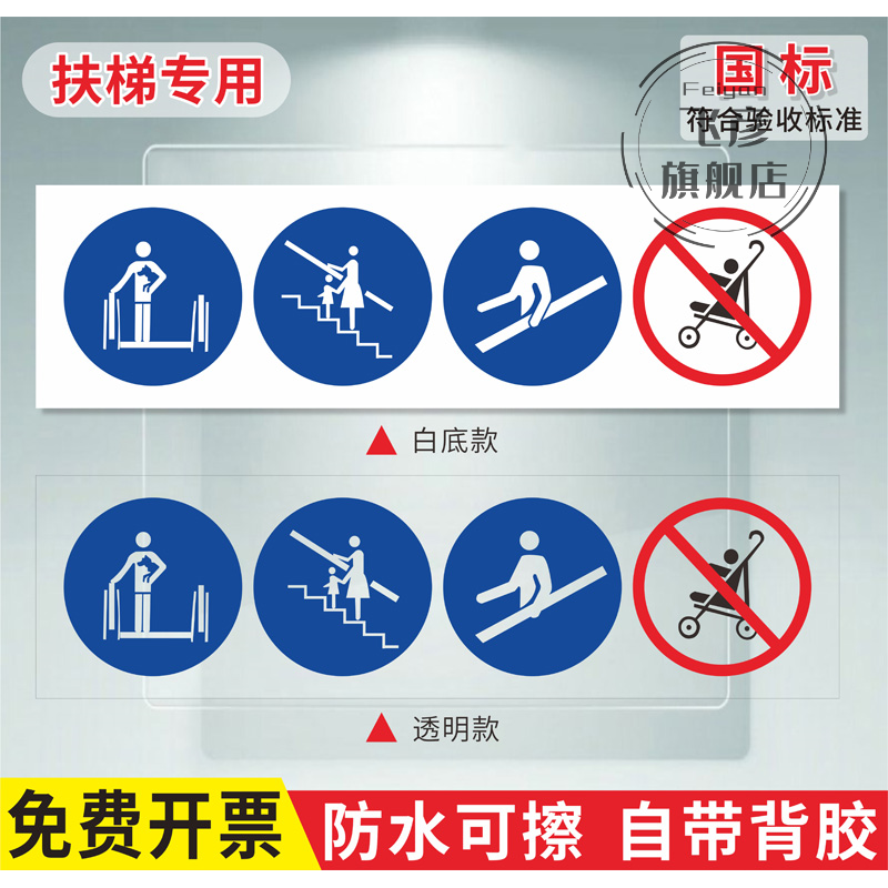 自动扶梯安全标识牌紧握扶手警示牌机场车站商场超市医院安全检查透明标识提示贴扶梯安全温馨提示标语可定制