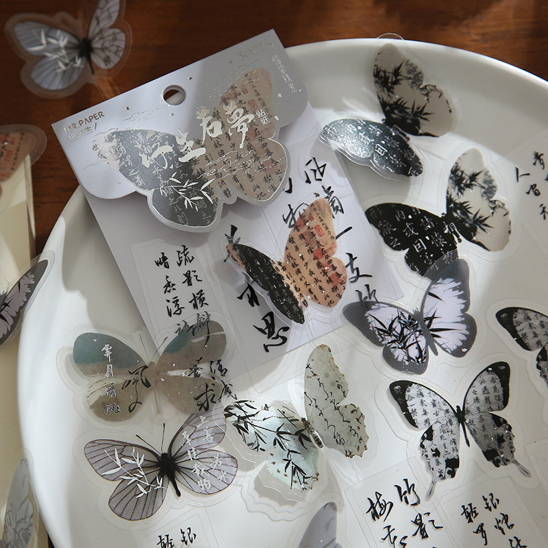 小日子不翻篇碟染扶光烫金PVC贴纸包国风书法文字手帐拼贴装饰素