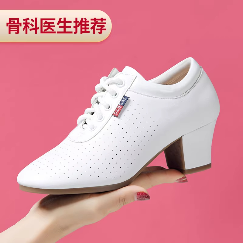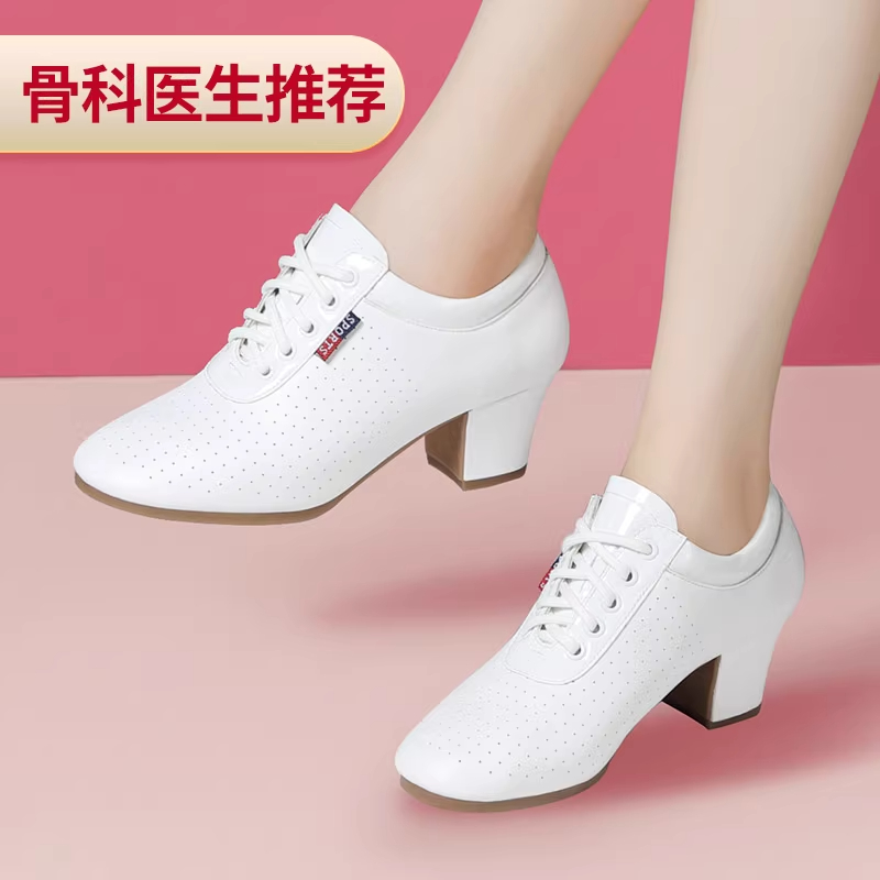 白色真皮交谊水兵广场舞蹈鞋女专业拉丁舞教师鞋成人形体训练功鞋