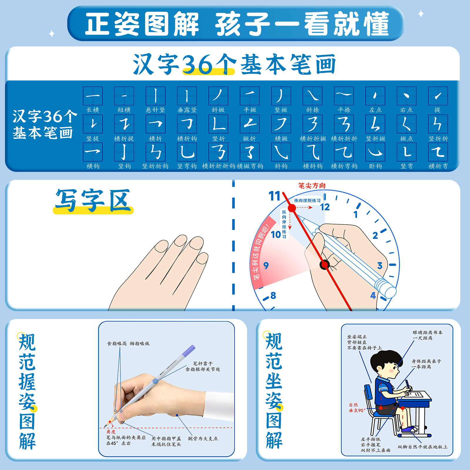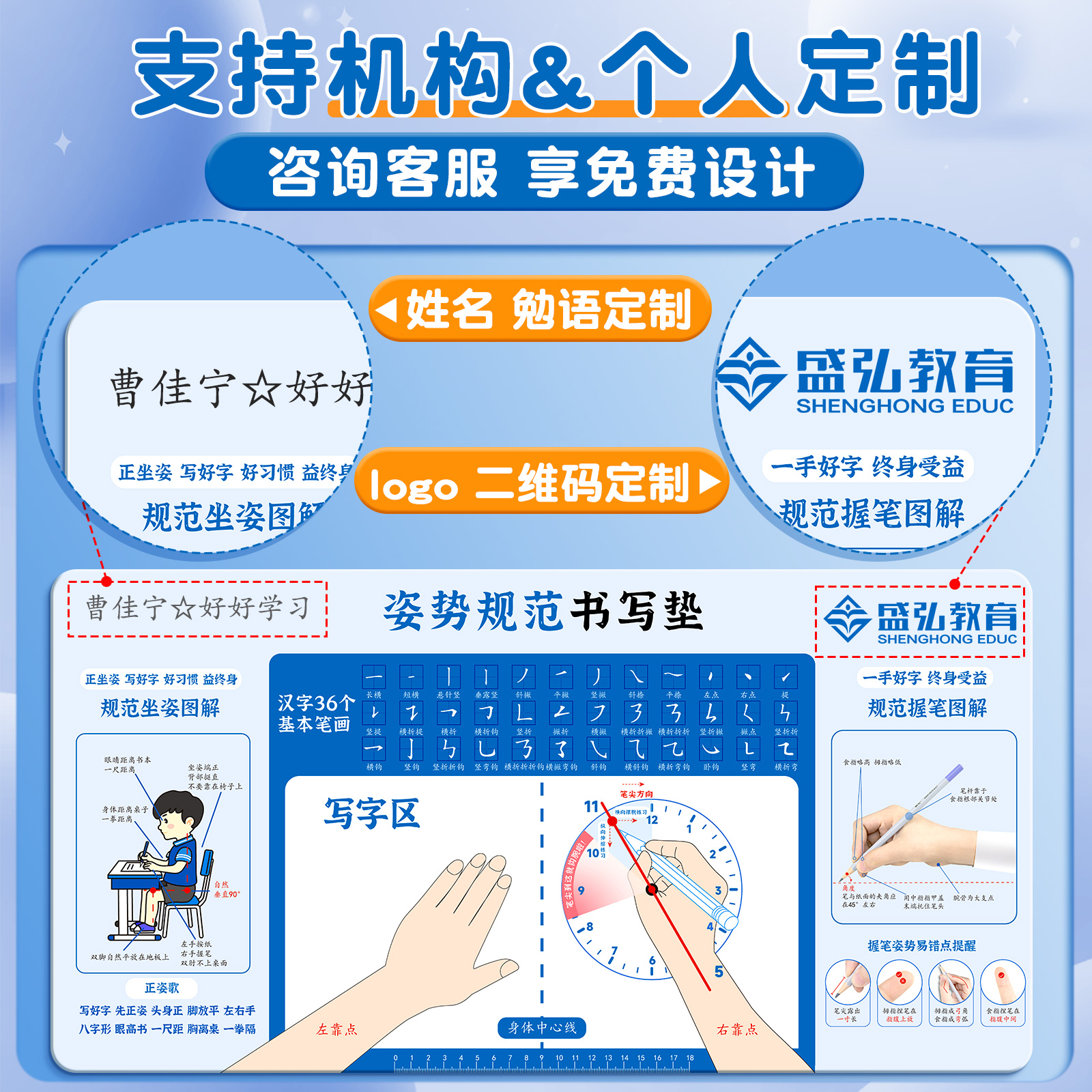 握笔正姿写字垫练字考试钟表盘板控笔软硬笔书法专用垫定制小学生儿童双姿正确规范书写练字桌面写字板垫板子
