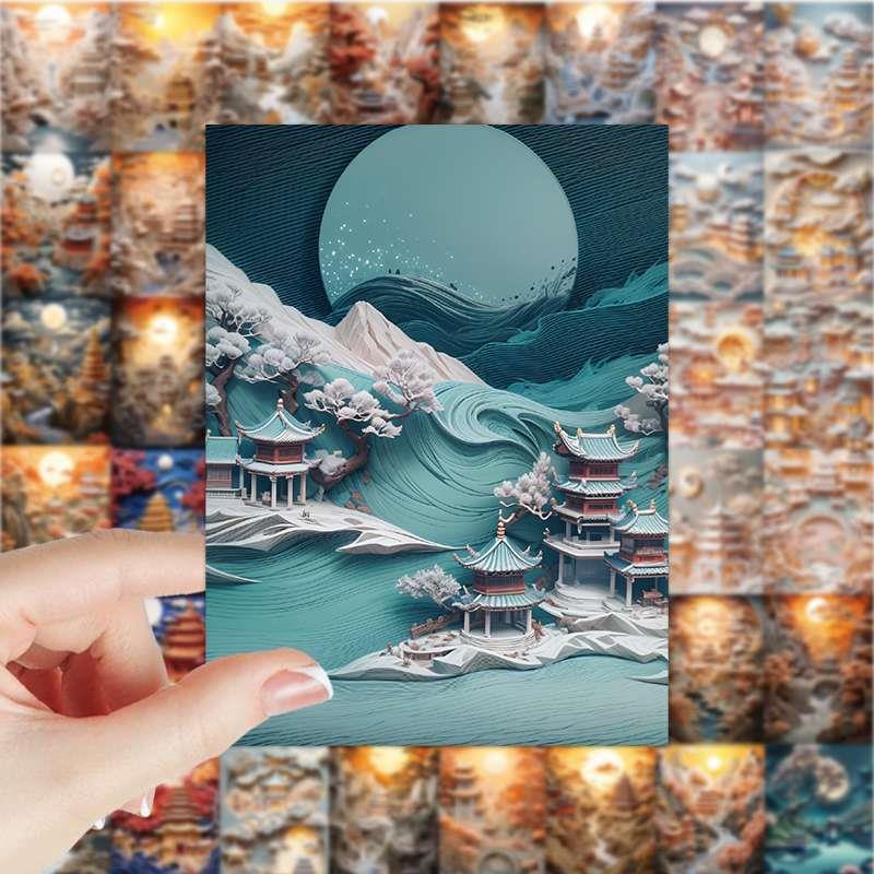 59张国风艺术立体纸雕精美爆款中秋佳节国潮古风贴画防水儿童贴纸