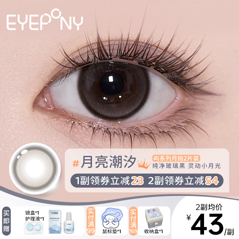 EYEPONY美瞳屿月抛月亮潮汐海岸线雾中镜屿麋褐蓝色隐形眼镜2片