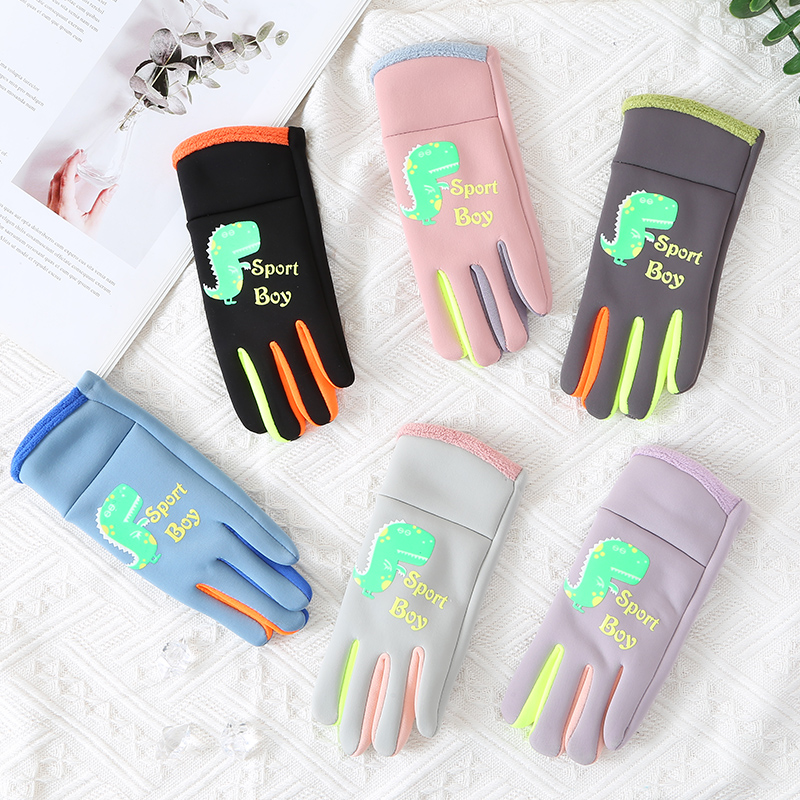 儿童手套秋冬季加绒保暖小学生男童女孩加厚骑车防风防水户外骑行