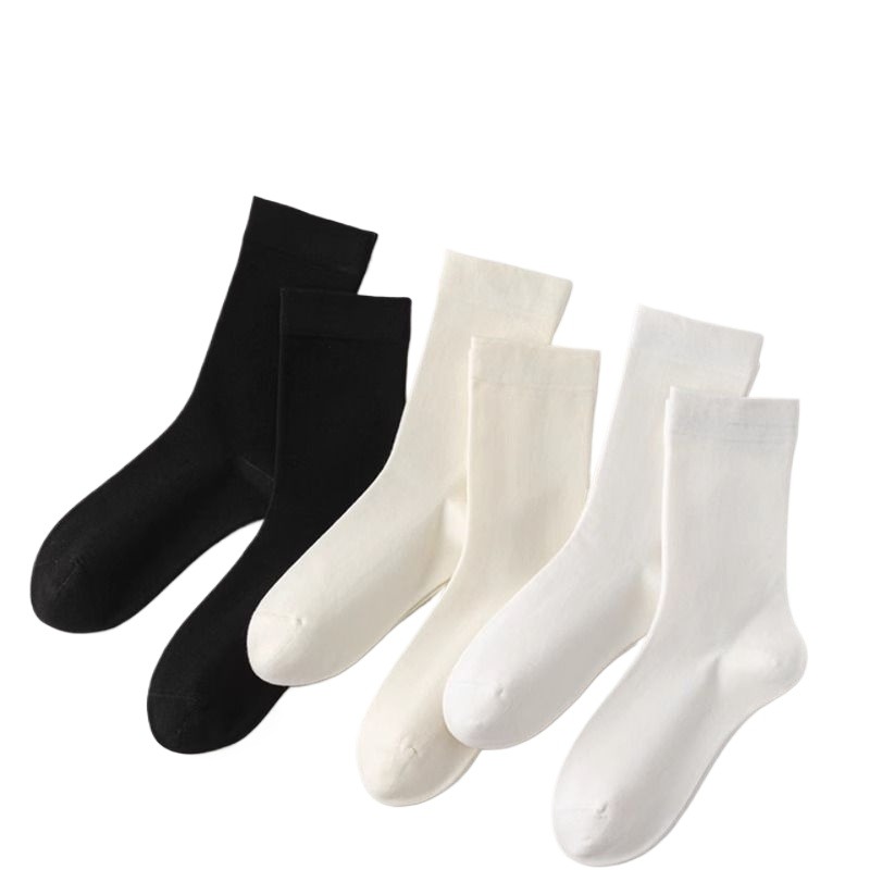 袜子女春秋无骨袜配小皮鞋堆堆袜黑白色中筒月子袜纯棉防脚气防臭
