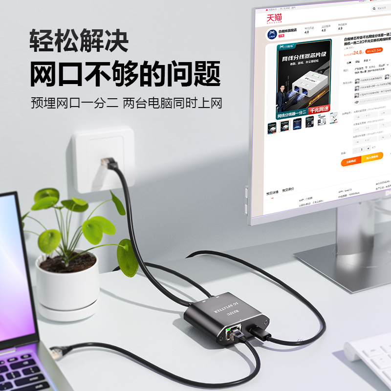 白蜘蛛芯片级千兆支持IPTV/IGMP网络分线器一进二出网线一分二同时上网集线器3口1分2交换机一拖二2口