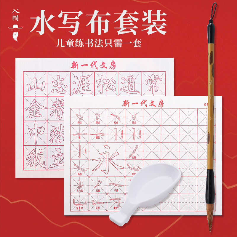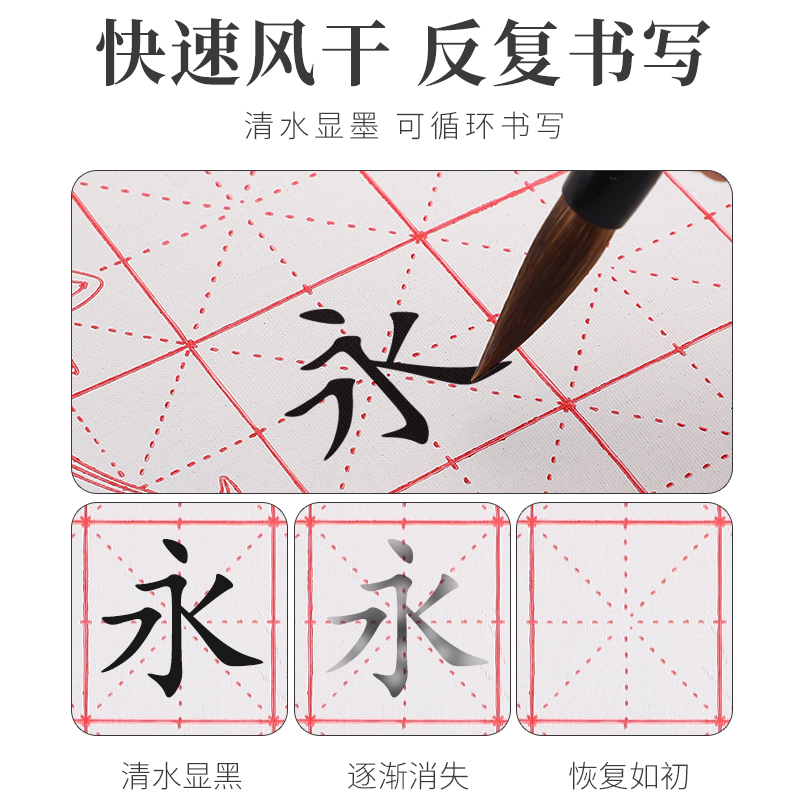 描红水写布套装初学者入门不脏手永字启蒙小楷毛笔书法清水临摹练习免墨汁毛笔字帖水写布练习楷书练字帖