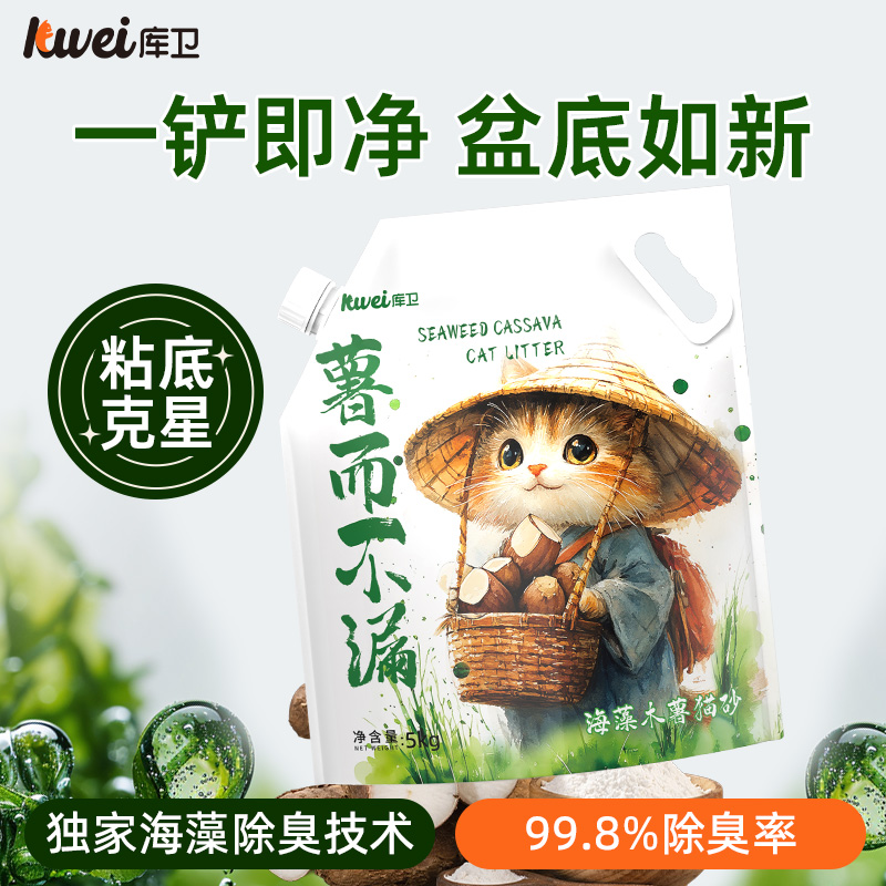 库卫纯木薯猫砂海藻除臭植物砂几近无尘不沾底官方正品易结团包邮
