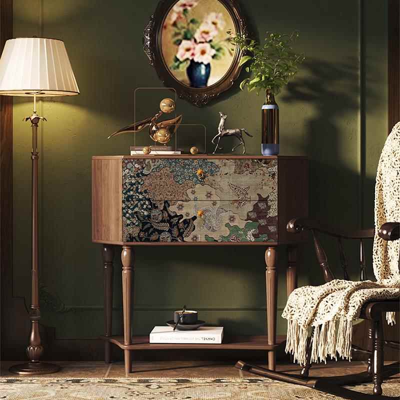 鹏音伴法式复古客厅玄关 柜 入户正对门靠墙抽屉收纳储物装饰高脚 柜 玄关 桌摆件饰品