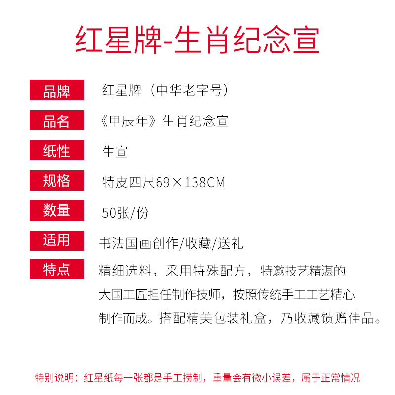 红星宣纸红星牌宣纸龙年生肖2024年纪念宣特别发售收藏馈赠佳品书法绘画作品用山水国画创作生宣纪念生肖邮票