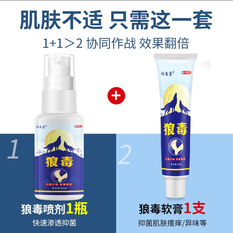 狼毒喷脚止脱皮抑菌喷雾烂脚丫抑真菌感染一喷一抹祛脚丫臭乳膏