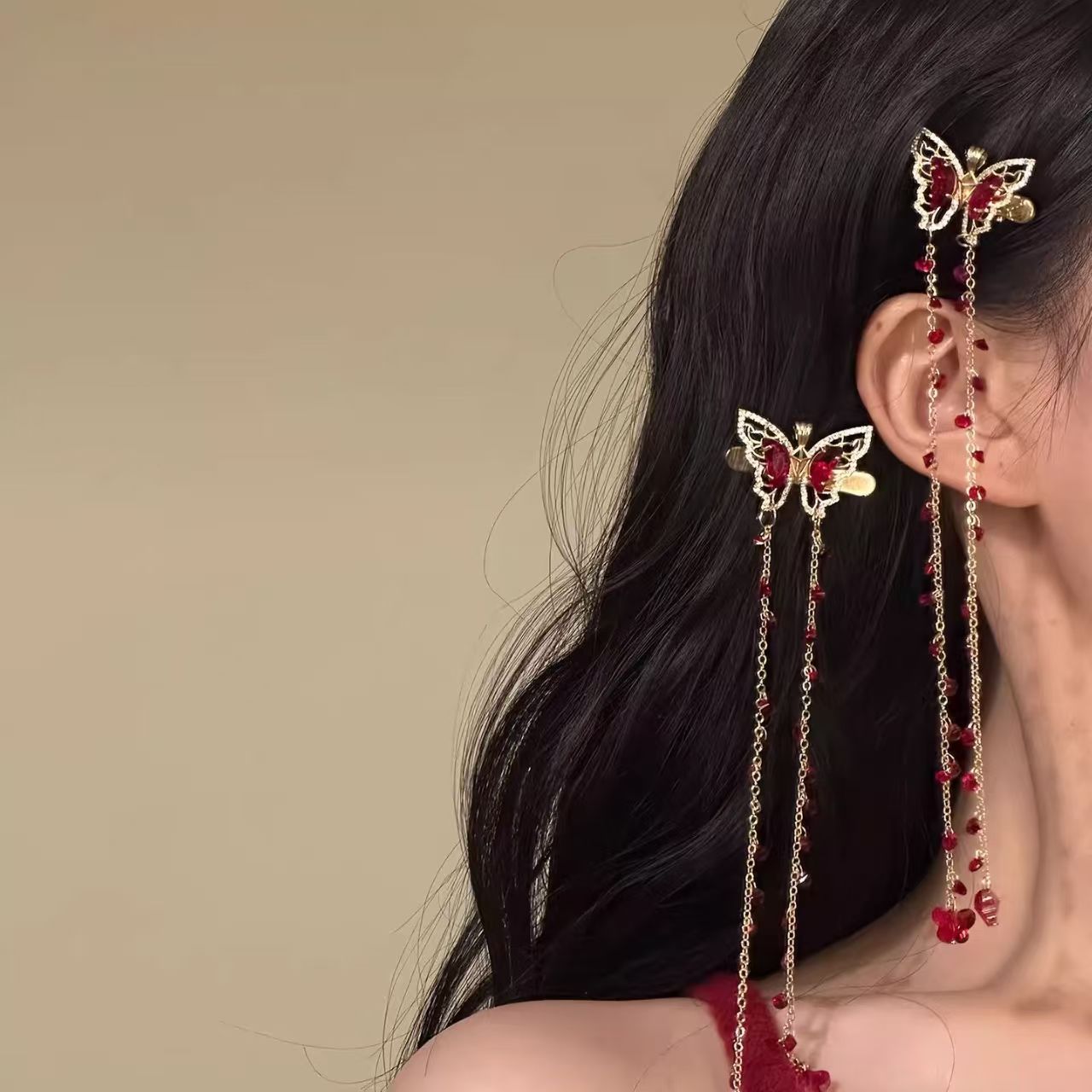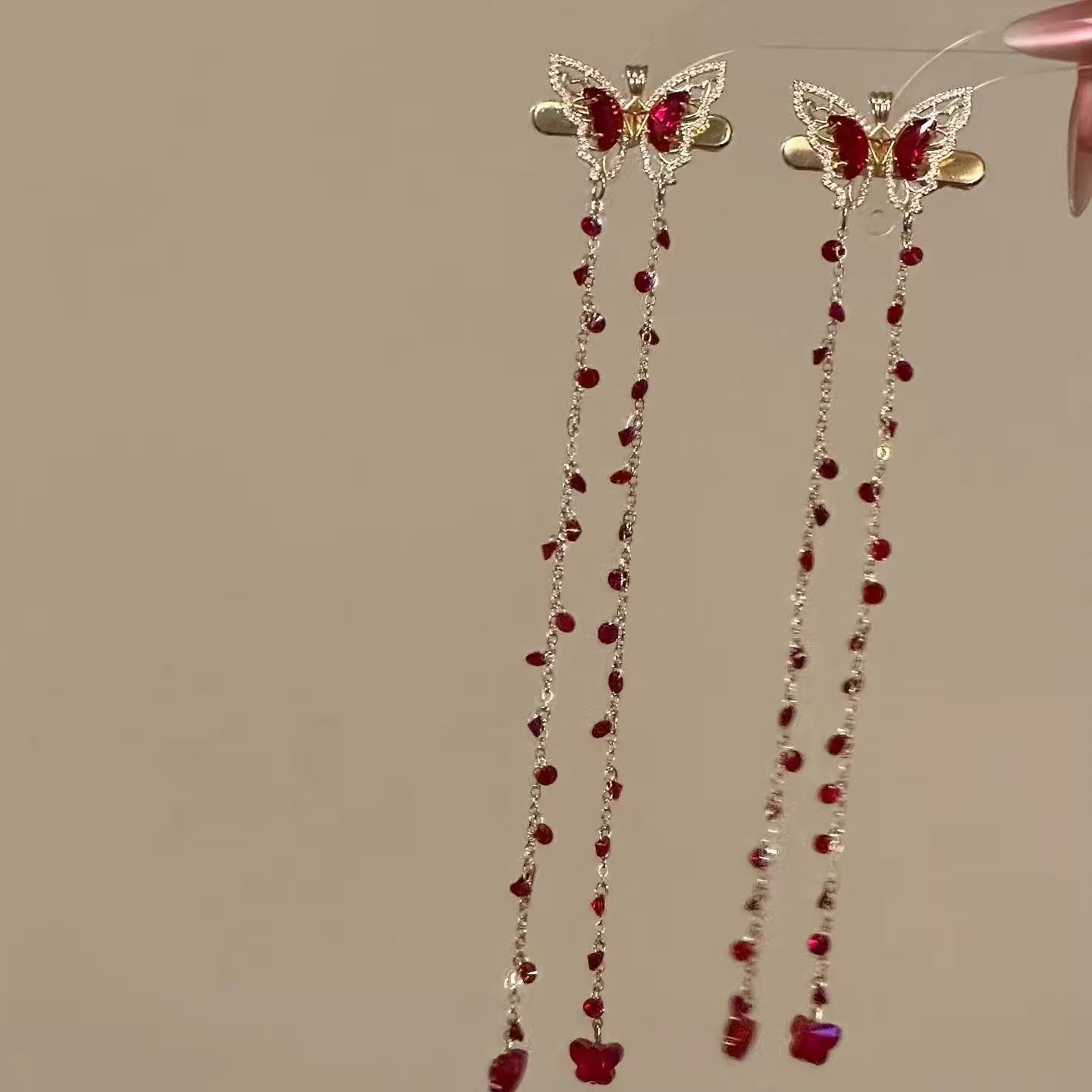 【又见佳人】新中式气质红色蝴蝶流苏发夹2025新款轻奢感精致发饰