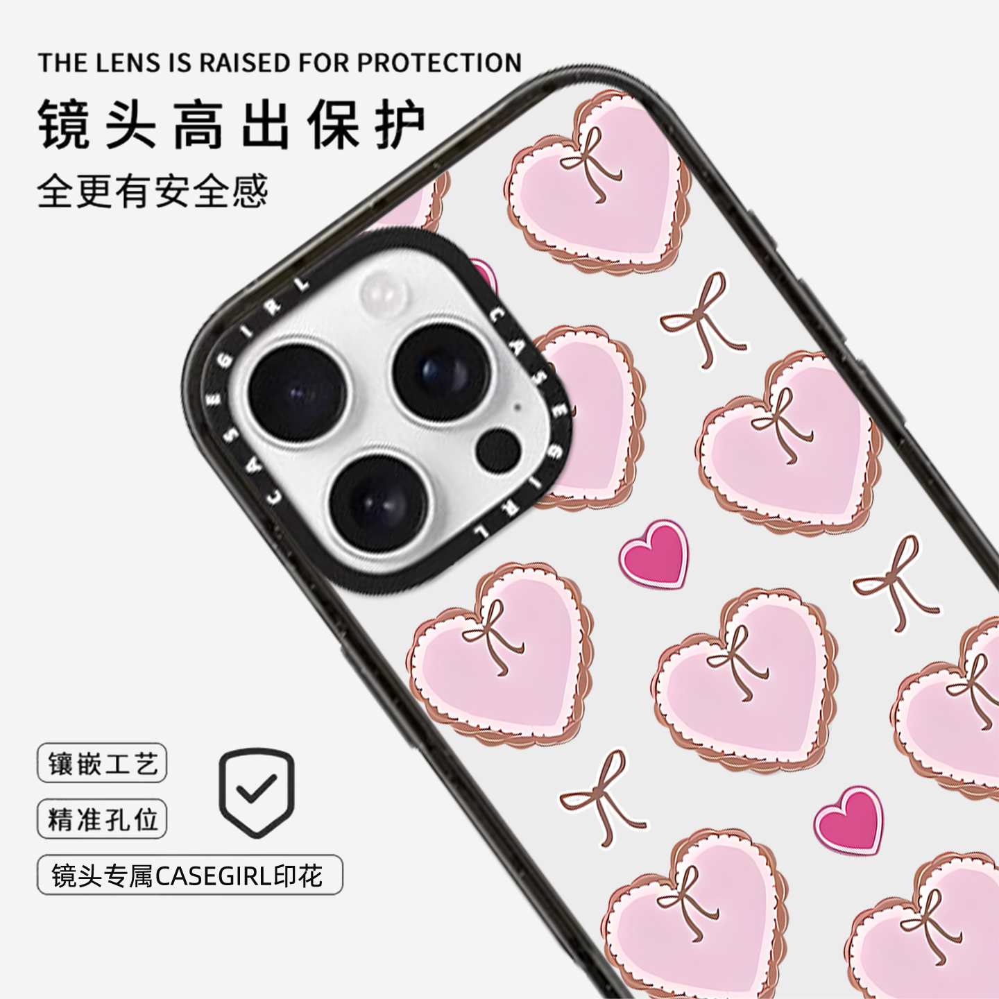 CASEGIRL爱心蝴蝶结适用苹果17ProMax手机壳iPhone16pro少女15亚克力14plus超好看的13全包ai键12防摔11女xs